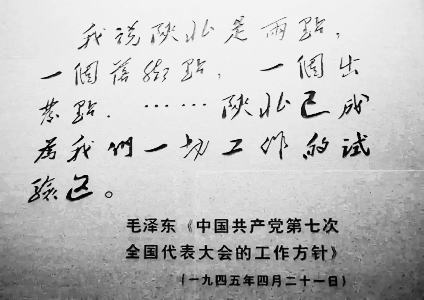 “我说陕北是两点,一个落脚点,一个出发点。陕北已成为我们一切工作的试验区。”──毛泽东